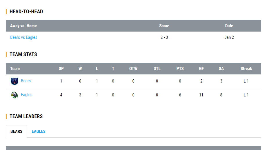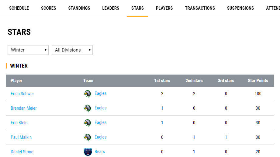 Follow the game with shooting, scoring and penalty summaries. Display the game's top three stars.