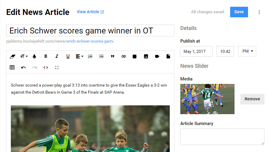 Post news articles with ease. Enhance your article with a featured photo or video.